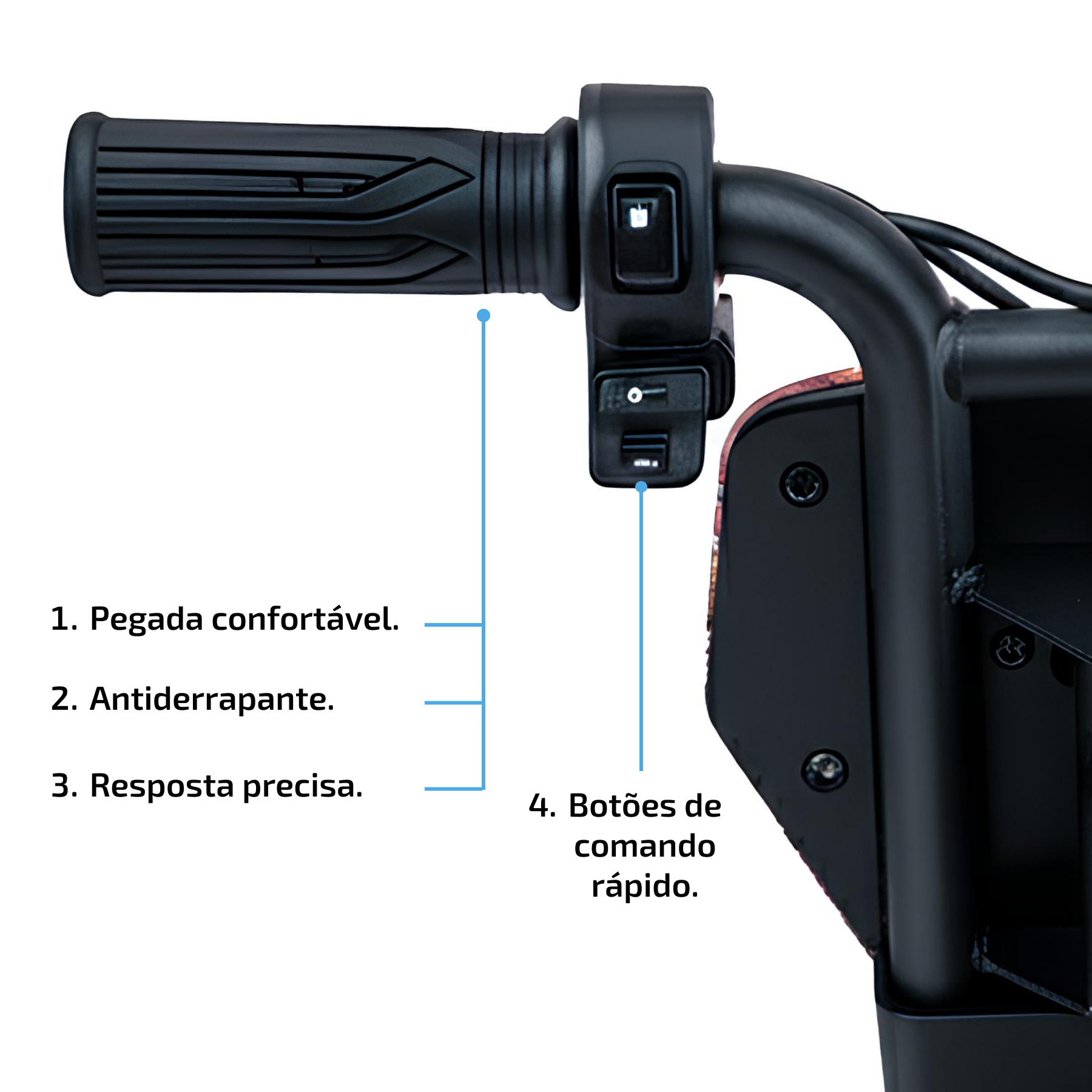 Autonomia de 40 minutos à 1h30, dependendo do modo de uso e peso do(a) condutor(a)