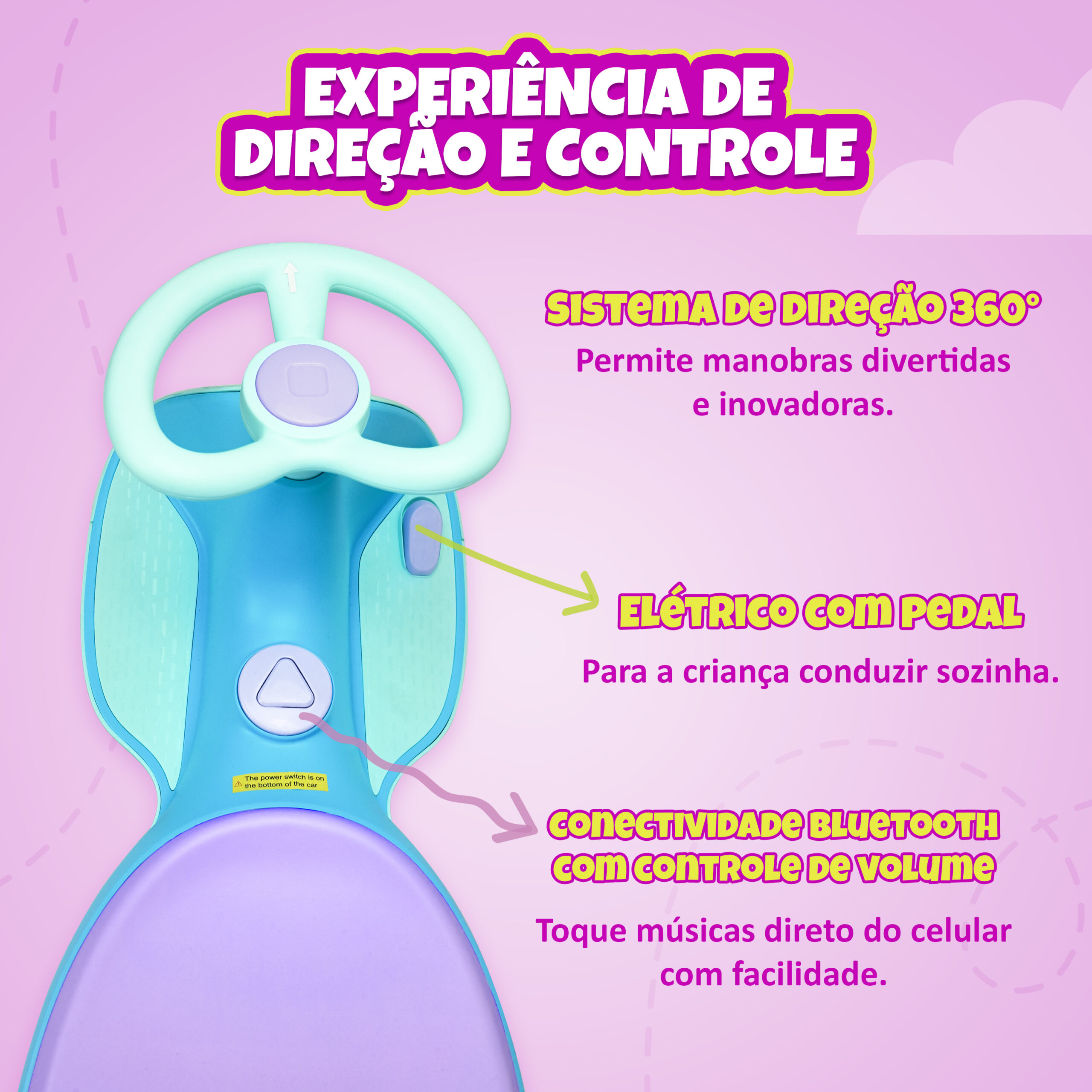 Porque oferecem uma direção inovadora com giro de 360°, combinando modo elétrico e manual. As luzes LED e o som via Bluetooth criam uma experiência divertida e estilosa.